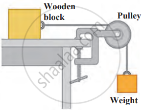 In the figure alongside, a string, attached to a wooden block on a table, is passed over a pulley and tied to a weight. On applying a sufficient weight, the block will be seen to move. If the block moves forward, we can say that it has been displaced. Due to the displacement, we say that the force has done some work. We know that work done depends on the force and the displacement.