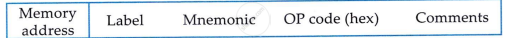 5. Memory address is location where OP code is stored. Label and comment fields are optional.
