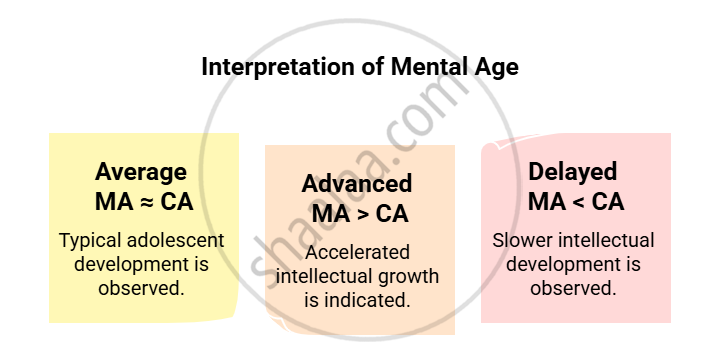 - If MA equals CA, development is average; if MA is higher than CA, intelligence is advanced; if MA is lower than CA, development is delayed.
