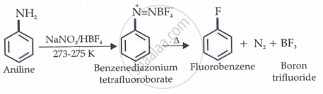 When a diazonium salt is treated with fluoroboric acid (HBF), the diazonium fluoro borate precipitates out of solution. If this precipitated salt is filtered and then heated, it decomposes to give the aryl fluoride.
