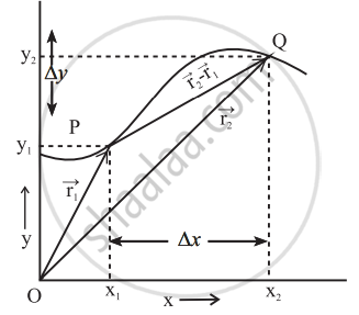 • At time t₂, it is at Q with coordinates (x₂, y₂):