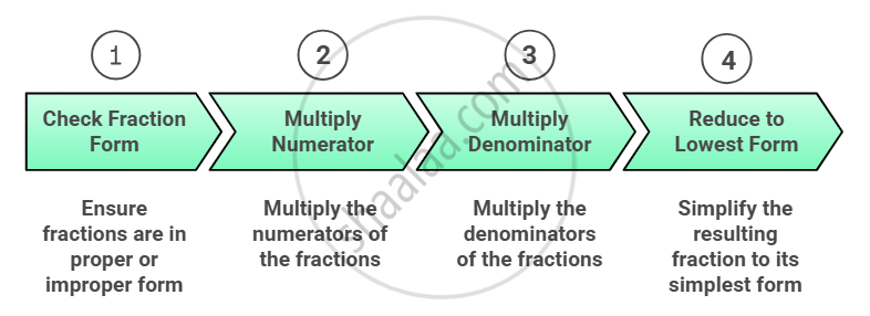 Multiplication of fractions involves multiplying the numerators and denominators separately. Fractions with different denominators can be multiplied directly without any modifications. However, mixed fractions must first be converted into improper fractions.