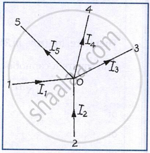 Consider a junction O where five conductors meet, carrying currents I1, I2, I3, I4 and I5.
