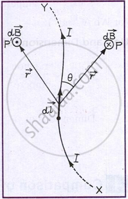 The direction of dB is perpendicular to the plane containing dl and the position vector \[\vec r\]. Hence, in vector form: