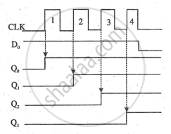 Shift Left: Fig shows a shift left register prepared by cascading four D flip-flops. As shown, Din sets up the right flip-flop, Q0 sets up Q1, Q1 sets up the third and so on. The flip-flops are +ve edge triggered type.