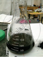 - Add half a spoonful of coal powder to each flask.