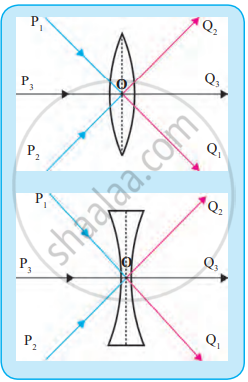 - Optical Centre (O): The point at the centre of the lens through which light rays pass without deviation.