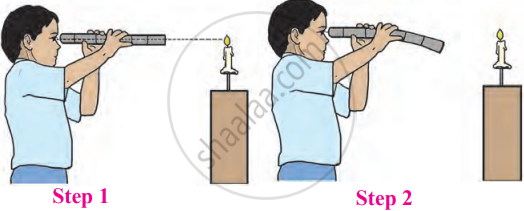 In Step 2, moving any of the cardboard out of alignment blocks the path of light, making the flame invisible.