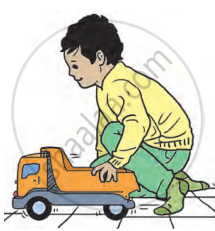 A boy pushing a car