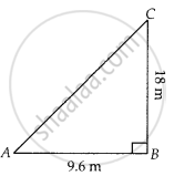 माना कि ध्वज का खंभा BC = 18 m है और इसकी छाया AB = 9.6 m है।