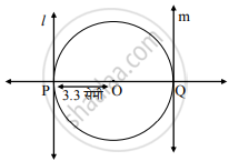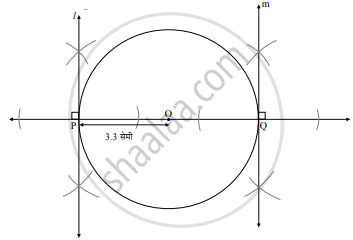 | 3.3 सेमी त्रिज्येचे व O केंद्र असलेले वर्तुळ काढून त्यामध्ये 6.6 सेमी लांबीची जीवा PQ काढा. |