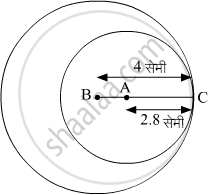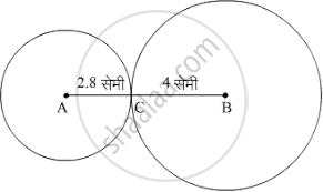 4 सेमी और 2.8 सेमी त्रिज्या वाले (1) बाह्यस्पर्शी (2) अंतःस्पर्शी वृत्त बनाइए।