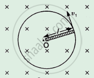 A 1.0 m long metallic rod is rotated with an angular frequency of 400 rad s−1 about an axis normal to the rod passing through its one end. The other end of the rod is in contact with a circular metallic ring. A constant and uniform magnetic field of 0.5 T parallel to the axis exists everywhere. Calculate the emf developed between the centre and the ring.