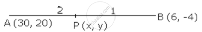 P (x , y) = P `((2 xx 6 + 1 xx 30)/(2 + 1), (2 xx -4 + 1 xx 20)/(2 + 1))`