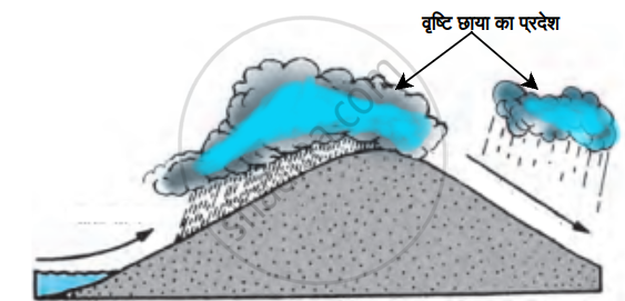 (अ) दिए गए चित्र से यह ज्ञात होता है कि पर्वत के बायीं ओर अधिक वर्षा हो रही है। पर्वतों के हवादार भाग में अधिक वर्षा होती है।