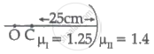 Region I and II are separated by a spherical surface of a radius of 25 cm. An object is kept in the region I at a distance of 40 cm from the surface. The distance of the image from the surface is ______.