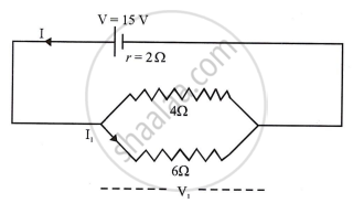r = 2 Ω, R1 = 4 Ω, R2 = 6 Ω, V = 15 V