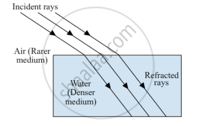 A beam of light travelling in air is incident of water. Draw a ray-diagram indicating the change in its path in water.