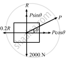 A box weighing 2000 N is to be slowly slid through 20 m on a straight track with friction coefficient 0⋅2 with the box. (a) Find the work done by the person pulling the box with a chain at an angle θ with the horizontal. (b) Find the work when the person has chosen a value of θ, which ensures him the minimum magnitude of the force.