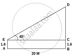 ∴ `tan 45^circ = (h - 1.6 )/20`
