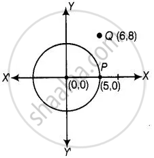 A circle has its centre at the origin and a point P(5, 0) lies on it. The point Q(6, 8) lies outside the circle.
