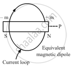 A circular loop carrying a current is replaced by an equivalent magnetic dipole. A point on the axis of the loop is in