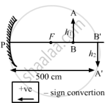 Distance of image from screen v = −5.0 m = −500 cm,