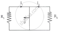 Two resistors R1 and R2 are connected across the ends of the rails. There is a uniform magnetic field `vec"B"` pointing into the page. An external agent pulls the bar to the left at a constant speed v. The correct statement about the directions of induced currents I1 and I2 flowing through R1 and R2 respectively is: