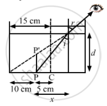 \[ \Rightarrow \frac{3}{\sqrt{23}} = \frac{d - 10}{d} \left( \because \sin i = \frac{3}{4\sqrt{2}} \Rightarrow \tan i = \frac{3}{\sqrt{23}} \right)\]