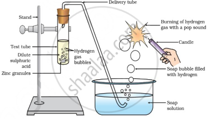 Reaction of zinc granules with dilute sulphuric acid and testing hydrogen gas by burning
