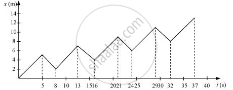 A drunkard walking in a narrow lane takes 5 steps forward and 3 steps backward, followed again by 5 steps forward and 3 steps backward, and so on. Each step is 1 m long and requires 1 s. Plot the x-t graph of his motion. Determine graphically and otherwise how long the drunkard takes to fall in a pit 13 m away from the start.