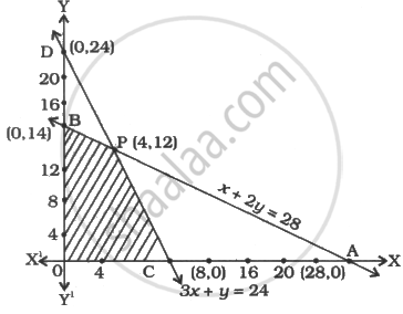 (a) The line x + 2y = 28 passes through A(28, 0) and B(0, 14).