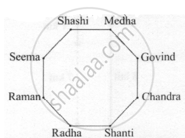 A group of friends are sitting in an arrangement with one each at the corner of an octagon. AU are facing the centre. Medha is sitting diagonally opposite Radha. Medha is on Seema's left. Raman is next to Seema and opposite to Govind. Govind is on Chandra's right. Shanti is not on Medha's right but is opposite to Shashi. Who is opposite to Chandra?