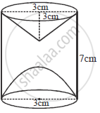 The height of the solid cylinder is 7 cm, radius of each of hemisphere, cone and cylinder is 3 cm. Height of cone is 3 cm.