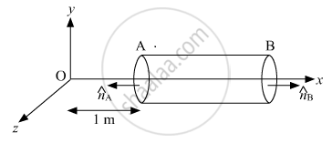 A hollow cylindrical box of length 1 m and area of cross-section 25 cm2 is placed in a three dimensional coordinate system as shown in the figure. The electric field in the region is given by `vecE = 50xhati` where E is NC−1 and x is in metres. Find