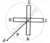 Two short magnets of equal dipole moments M are fastened perpendicularly at their centre in the Figure . The magnitude of the magnetic field at a distance d from the centre on the bisector of the right angle is