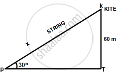 A kite is attached to a string. Find the length of the string, when the height of the kite is 60 m and the string makes an angle 30° with the ground.