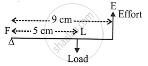 A lever of length 9 cm has its load arm 5 cm long and the effort arm is 9 cm long.