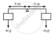 A light rod of length 1 m is pivoted at its centre and two masses of 5 kg and 2 kg are hung from the ends as shown in the following figure. Find the initial angular acceleration of the rod assuming that it was horizontal in the beginning.