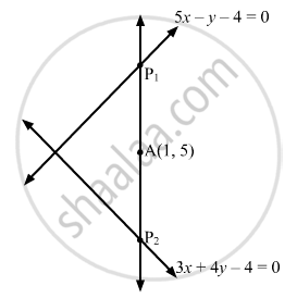 Let P1P2 be the intercept between the lines 5x − y − 4 = 0 and 3x + 4y − 4 = 0.