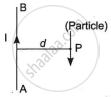 A long straight wire AB carries a current I. A particle (mass m and charge q) moves with a velocity `vec"v"`, parallel to the wire, at a distance d from it as shown in the figure. Obtain the expression for the force experienced by the particle and mention its directions.