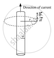 A long straight wire of a circular cross-section of radius ‘a’ carries a steady current ‘I’. The current is uniformly distributed across the cross-section. Apply Ampere’s circuital law to calculate the magnetic field at a point ‘r’ in the region for (i) r < a and (ii) r > a.