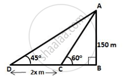 Let AB be the lighthouse and C and D be the two positions of the boat such that AB = 150 m, ∠ADB = 45° and ∠ACB = 60°.