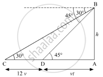 Suppose AB be the tower of height h meters. Let C be the initial position of the car and let after 12 minutes the car be at D. It is given that the angles of depression at C and D are 30º and 45º respectively.