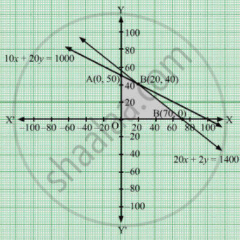 Therefore, \[x, y \geq 0\] To plant tree of type A requires 10 sq.m and type B requires 20 sq.m of ground per tree. And, it is given that a man owns a field of area 1000 sq.m.Therefore,