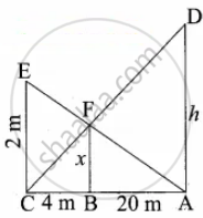 A man whose eye-level is 2 m above the ground wishes to find the height of a tree. He places a mirror horizontally on the ground 20 m from the tree and finds that if he stands at a point C which is 4 m from the mirror B, he can see the reflection of the top of the tree. How height is the tree?