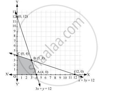 The corner points are A (4, 0), B (3, 3), and C (0, 4).
