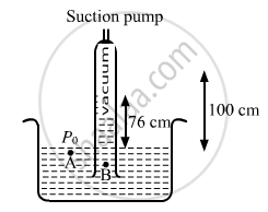 Shows in the following figure a siphon. The liquid shown is water. The pressure difference PB − PAbetween the points A and B is