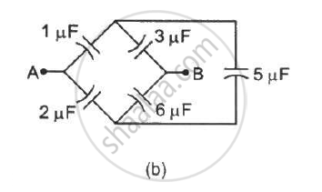 - Find the equivalent capacitance between points A and B in the given diagram.