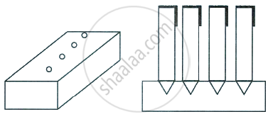 A pen stand made of wood is in the shape of a cuboid with four conical depressions to hold pens. The dimensions of the cuboids are 15 cm by 10 cm by 3.5 cm. - Mathematics